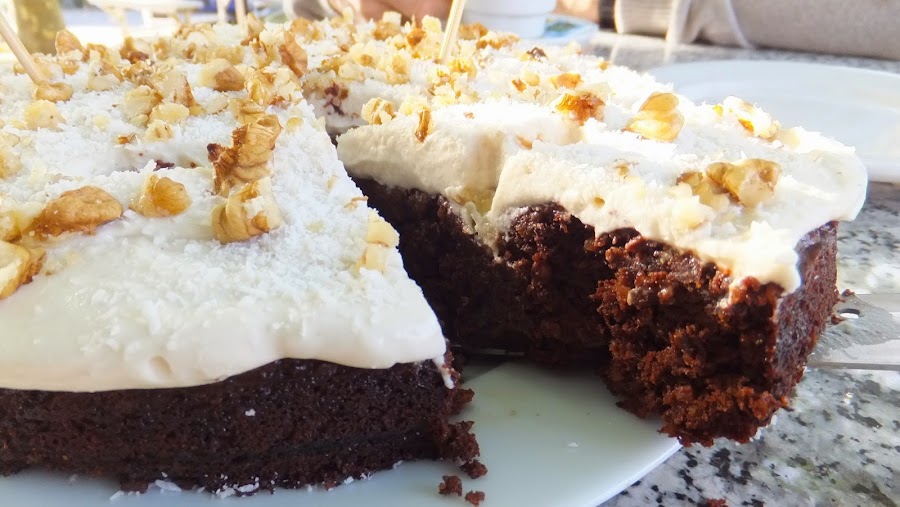 Antes le encantaban mis brownies pero ahora dice que no son light, o fit o aptos indistintamente y se niega a comerlos. He aprendido muchas cosas sobre cocina sana teniendo que cocinar para ella y una de las más destacables es este pastel de chocolate sin harina y sin azúcar que aunque no es la tarta sacher que a mi me hubiera gustado hacer, ni los brownies con los que ella solía soñar, ha resultado ser una tarta bastante interesante, con una textura densa y sabor intenso similares a los de un brownie. A mi hermana le ha encantado y la única pega que le hemos encontrado, y que corregiremos la siguiente vez, es que la cantidad de crema de coco que lleva, y que nos ha enamorado, debería ser el doble. Es una excelente opción para personas con dietas restringidas de todo tipo. Se podría incluso hacer una versión vegana, substituyendo los huevos por plátano o compota de manzana. Hasta las personas que no sigan dieta alguna quedarán gratamente sorprendidas con ella y es probable que nadie se de cuenta de que no lleva ni azúcar, ni harina si no lo mencionas.