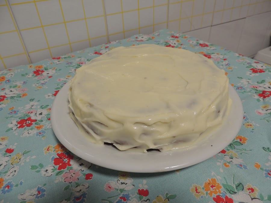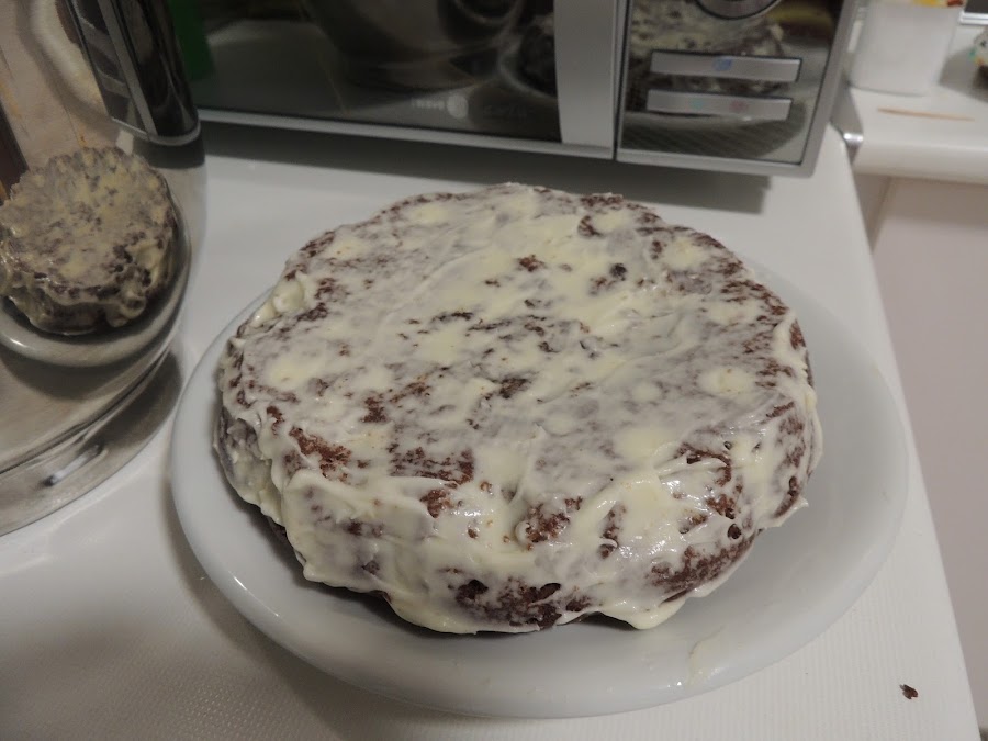 A continuación se cubre por completo con el resto de frosting. Se puede consumir directamente pero es mejor dejarla mínimo 2h en la nevera.