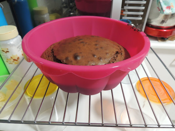 Es muy importante dejar la tarta en el monde durante unos minutos tras sacarla del horno para que se enfríe. Para que lo haga de forma homogénea es mejor ponerla en la misma rejilla donde se ha cocinado y elevarla para que así se enfríe por todos los lados por igual.