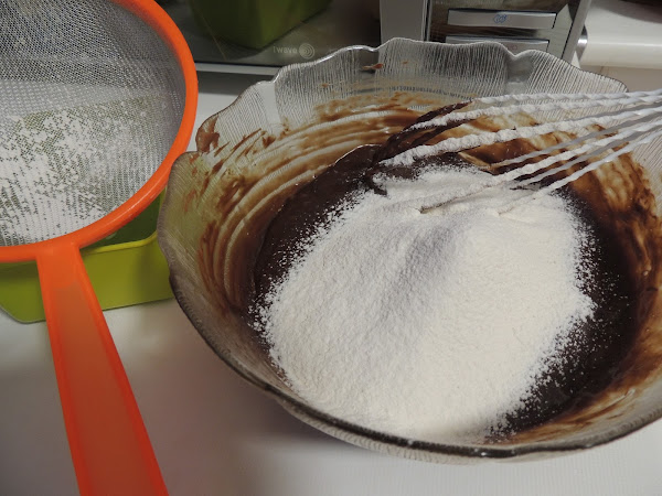 Antes de mezclar todo tamizamos la harina con la levadura para evitar que se formen grumos.