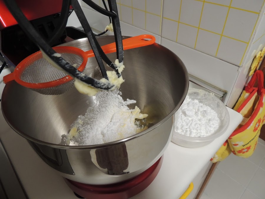 Añadimos el azúcar glas tamizado y lo incorporamos a la mantequilla.