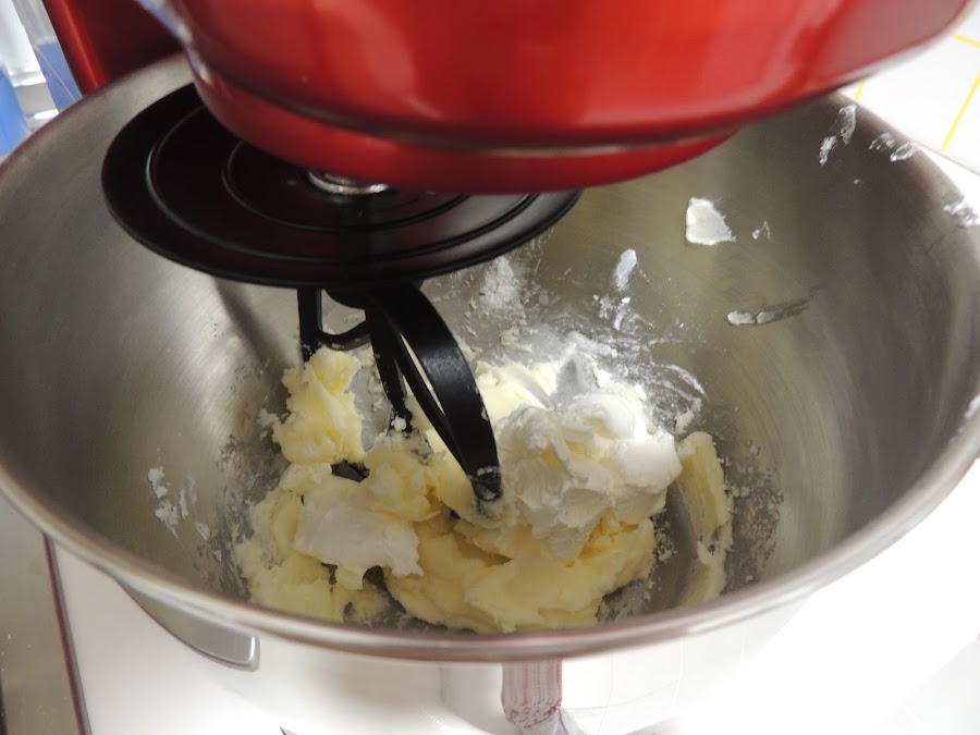 Mientras se enfría la tarta preparamos el frosting. Batimos la mantequilla en pomada.