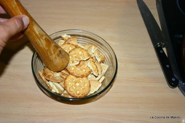 El primer paso es machacar las galletas o con mortero o con una picadora