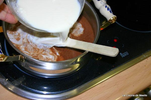 y se lo incorporamos a la nata (crema de leche) que ya estara templada