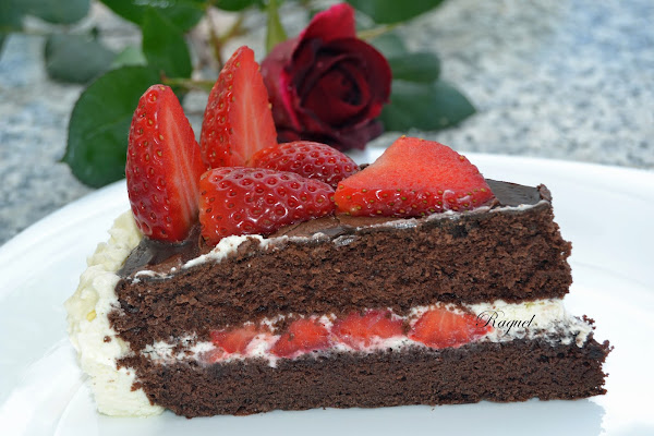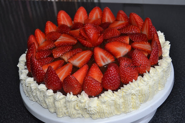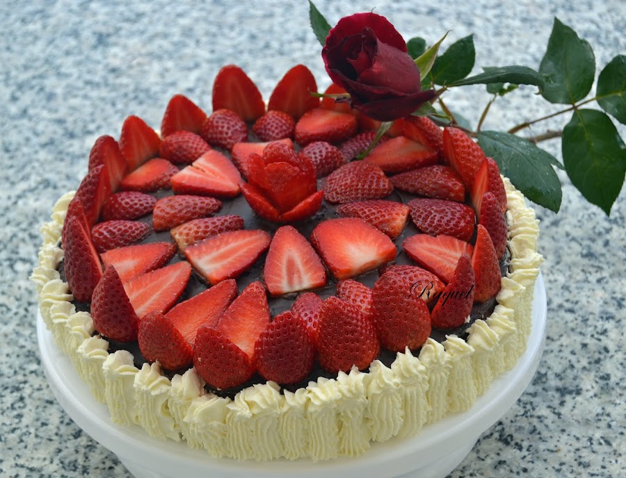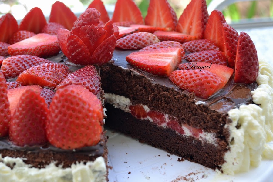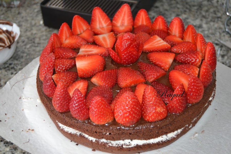 Quedo tan rica a pesar de hacerla deprisa y corriendo, porque se me ocurrió en el momento y me puse con ella, apenas en cuatro horas nos la estábamos comiendo ,iba a hacer un bizcochito normalito y corriente para acompañar el café, pero con esas fresas tan chulas que compre el viernes por la tarde me dije tengo que hacer algo con las fresas y se me ocurrió esta tarta.