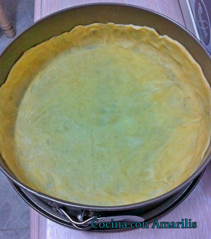 * Primero tenemos que hacer la base de la tarta y para eso tenemos que hacer la masa quebrada que arriba tenéis el enlace para que veais como se hace, también se puede hacer la base con galleta, pero ami particularmente no me gusta porque la considero demasiado dulce y por eso me gusta hacer las tartas con masa quebrada, que aparte le da otro sabor muy bueno.