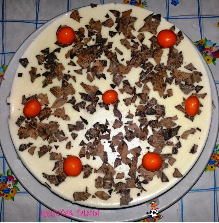 En un caldero ponemos 350ml de nata (crema de leche) a calentar y añadimos media tarrina de queso cremoso y vamos removiendo con una varilla hasta que empiece a hervir, derretimos el chocolate crujiente en el microondas y lo añadimos al caldero,removemos hasta que quede todo mezclado, añadimos 1 sobre y medio de cuajada en 350ml de leche, removemos bien y se lo añadimos al caldero con 30gr de azúcar,dejamos que vuelva a hervir mientras vamos removiendo.Apagamos el fuego y añadimos la mezcla en el molde,dejamos reposar y luego a la nevera.