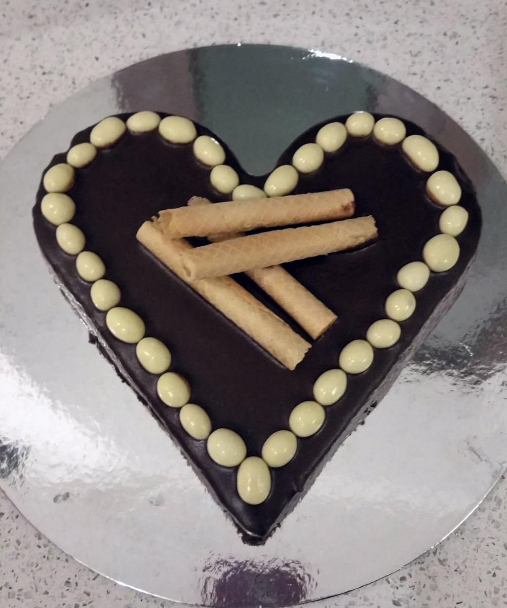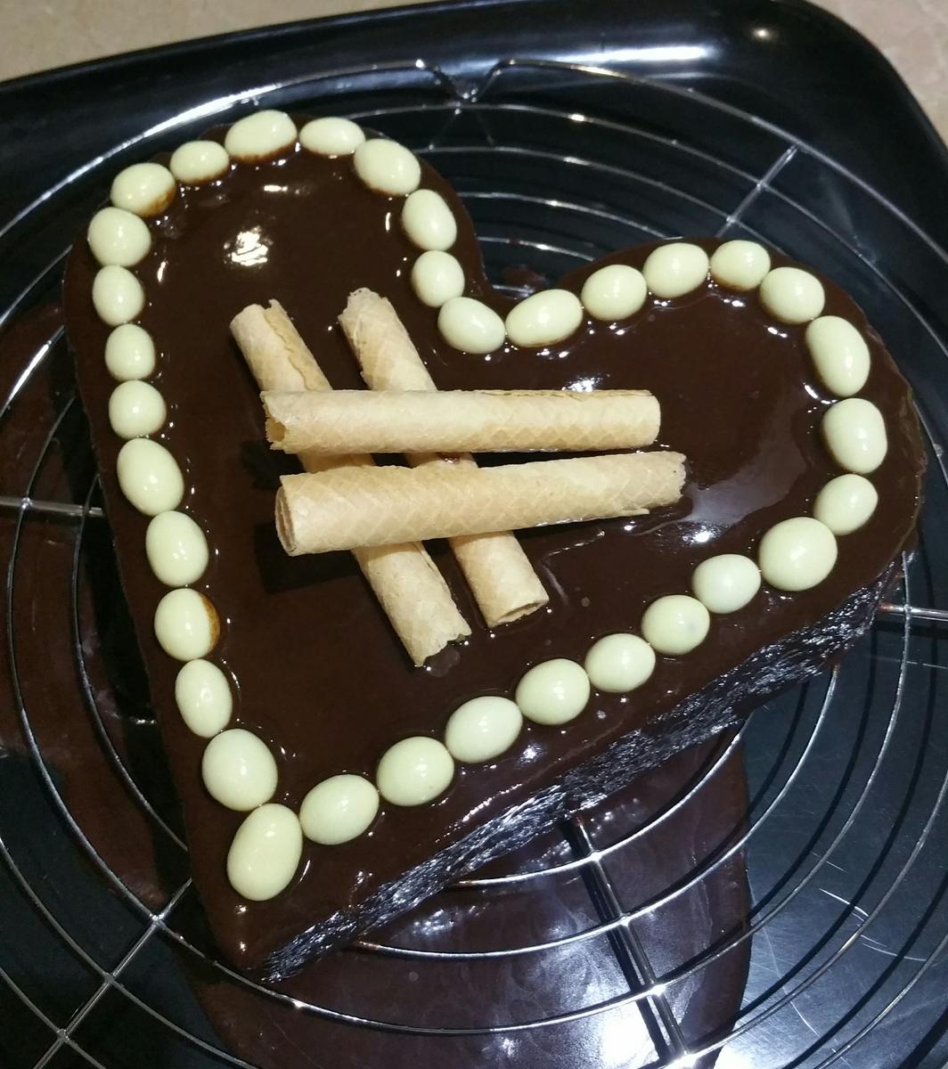 Yo la cubrí una vez fría con chocolate fondant para postres y quedó espectacular.