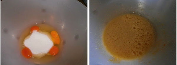 Batimos los huevos con el azúcar, hasta que esté cremoso y doblen su volumen.