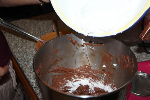 Incorporamos la harina, la fécula de patata y la levadura y mezclamos bien.