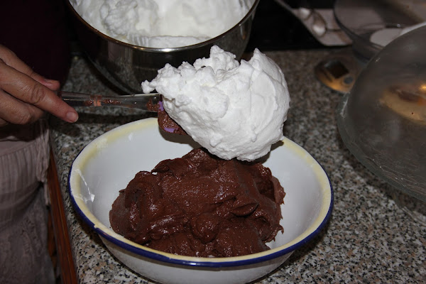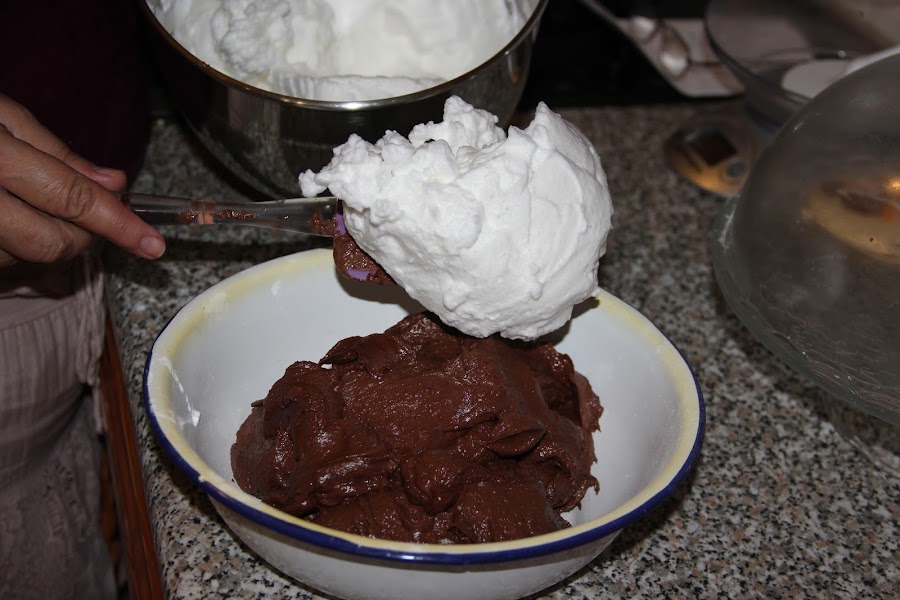 Cuando tengamos una mezcla homogénea agregamos, con movimientos envolventes, las claras a punto de nieve.