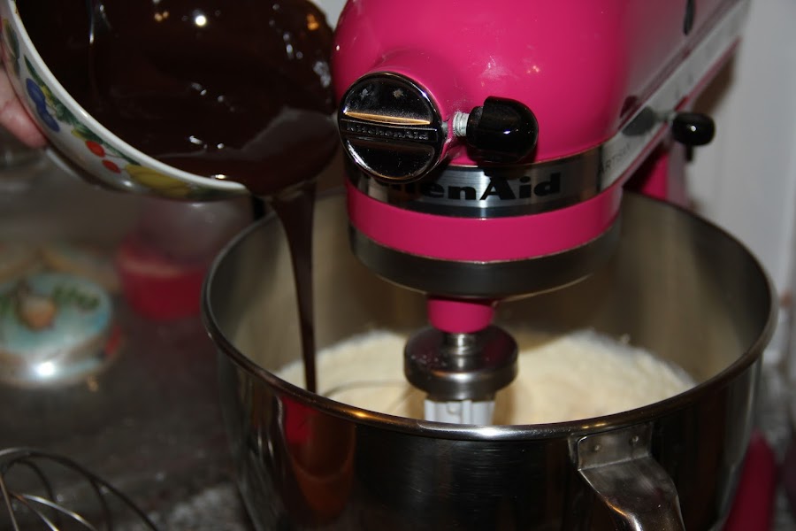 Seguidamente agregamos el chocolate fundido y aún caliente.