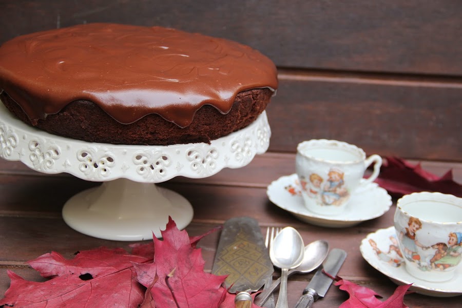 Una vez listo el glaseado y enfriado el bizcocho es momento de dejar caer la glasa sobre él.