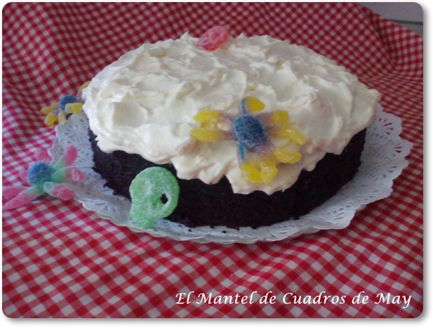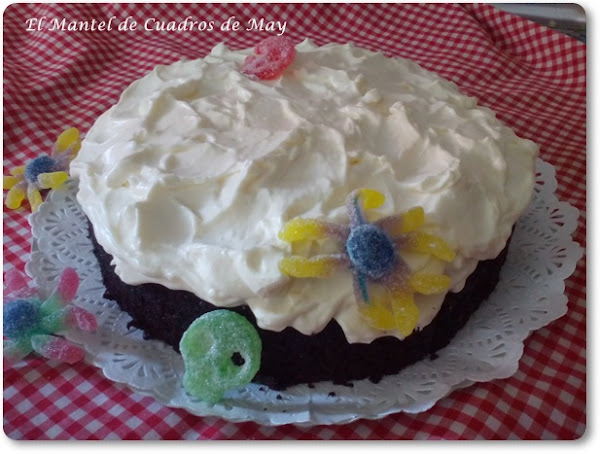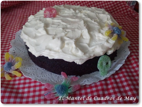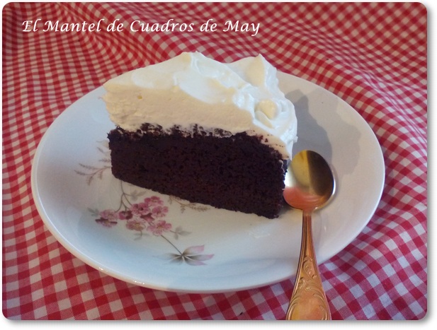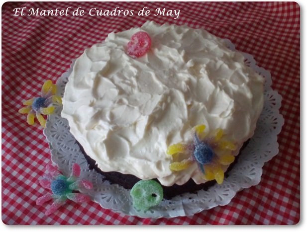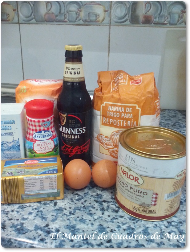 Al buscar recetas, las primeras que me salieron fueron versiones de la tarta Guinnes de Nigella Lawson, cocinera británica, que la he conocido en Canal Cocina haciendo recetas, sencillas y vistosas de la cocina italiana, y la verdad que ésta tarta también lo es. No sabe a cerveza, no te asustes, pero sí que es un bizcocho húmedo y denso, muy rico y con la crema blanca encima intentando emular la espuma de esa cerveza negra.