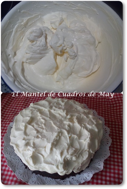Se mezcla el queso con el resto del azúcar glass con las varillas, quedará una crema suave. Se le va añadiendo la mezcla de la nata (crema de leche), con movimientos envolventes y suaves para evitar que baje hasta conseguir una crema suave.