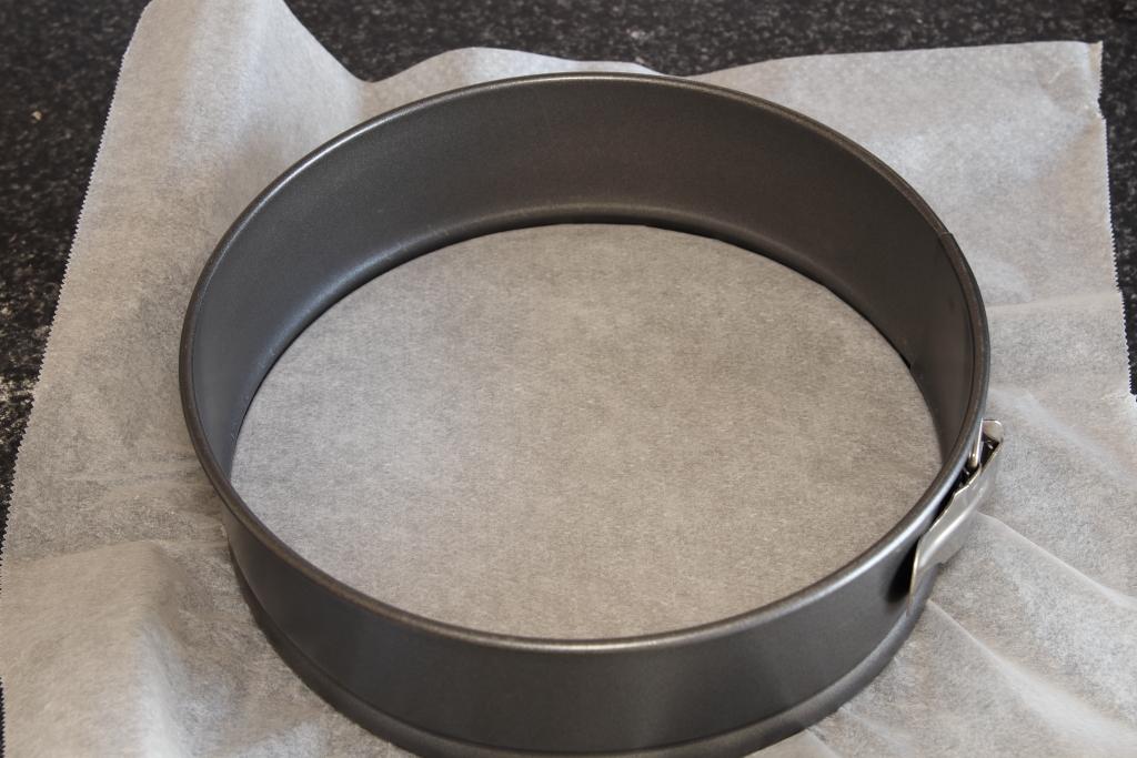 Ponemos el brick de nata (crema de leche) a enfriar en un bol con hielos 1 hora antes de la preparación de la receta.Preparamos un molde desmoldable de 22 cm de diámetro, forramos con papel de horno la base y reservamos.