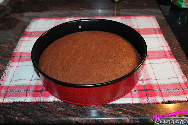 Para comprobar que está listo sin sacarlo del horno lo pincharemos en el centro con un pincho de cocina y si sale limpio es que está bien cocido, de lo contrario lo tendrás que dejar un poco más de tiempo, entre 3 y 4 minutos. Una vez listo lo sacaremos del horno, lo dejamos entibiar unos minutos, aún caliente lo desmoldaremos y lo ponemos con la parte de arriba hacia abajo sobre un paño de cocina y lo dejaremos enfriar del todo, esto lo hacemos para que el bizcocho quede completamente recto.