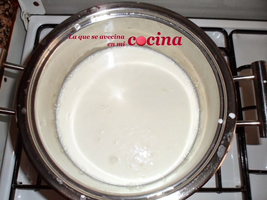 Ponemos en un cazo a calentar la leche y la nata (crema de leche).