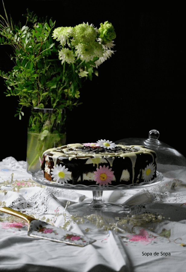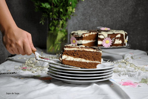 Es una apetitosa tarta de chocolate siendo como base un bizcocho, que se rellena con una crema de queso quark, mascarpone y nata montada (crema de leche).