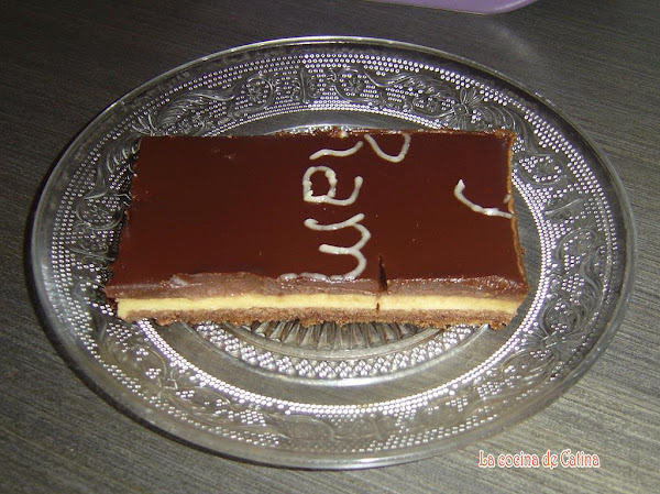 Ahora preparamos la cobertura de chocolate: ponemos la nata (crema de leche) y el chocolate a calentar en un cazo. Cuando se ha derretido el chocolate, apartamos del fuego y añadimos la mantequilla. Dejamos enfriar y lo echamos por encima de la crema de naranja y lo metemos de nuevo al frigorífico para que se cuaje bien.