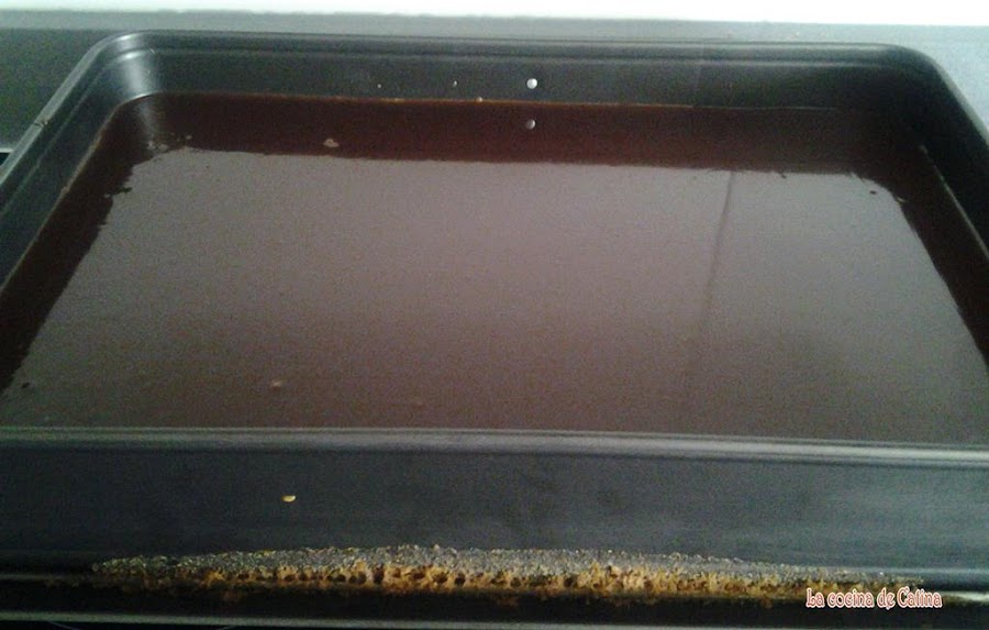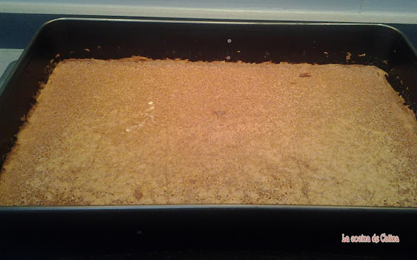 Una vez fría la echamos sobre el bizcocho y la metemos al frigorífico de 3 a 4 horas (yo la dejé toda la noche).