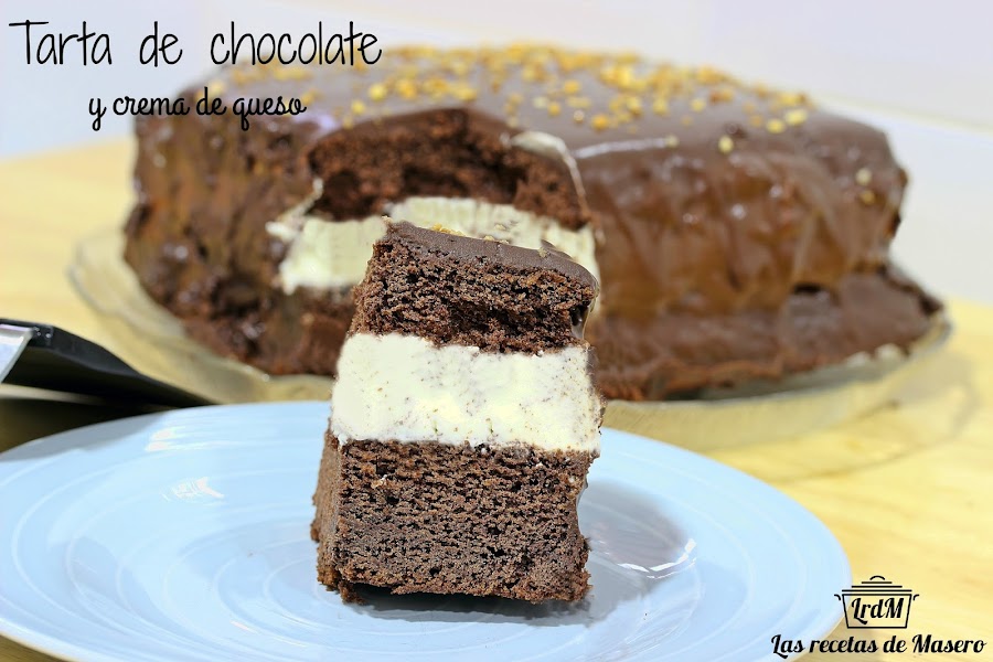 La tarta que hice fue un delicioso bizcocho de chocolate, relleno de crema de queso y todo cubierto por ganache de chocolate, vamos una maravilla. Otra de las combinaciones que me encanta, por cierto, queso con chocolate mmmm, buenísimooooo!
