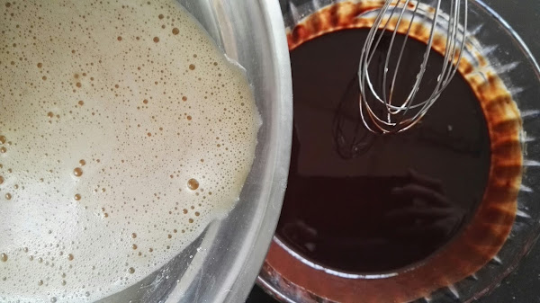 Vamos agregando y mezclando constantemente los huevos al chocolate y quedara un poco denso.