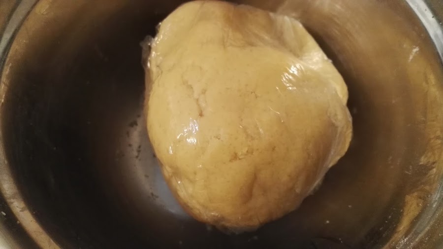 Por último agregamos el agua fría y terminamos de amasar hasta formar una bola suave y lisa que ya no se pegue en las paredes, la cual envolveremos en plástico de cocina y dejamos reposar al menos dos horas.