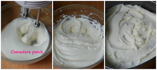 Montamos la nata (crema de leche) con las varillas y cuando comience a montar le añadimos la leche condensada y continuamos batiendo hasta que monte la nata (crema de leche) por completo.