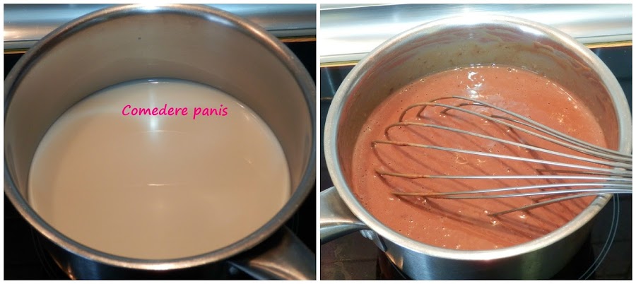 Comenzamos preparando el chocolate a la taza con 400 ml. de leche, la cantidad de chocolate dependerá de la marca de chocolate que uses, añade el azúcar si te gusta el chocolate dulce, en mi casa nos gusta sin azúcar. La consistencia debe quedar bastante espeso como si fuera una natilla. Reservamos el chocolate.