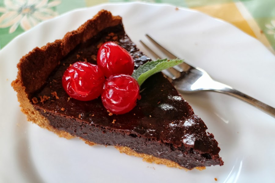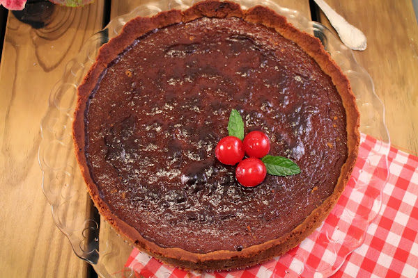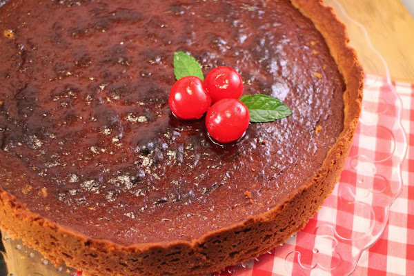 Pasado este tiempo, sacamos del horno, dejamos enfriar y desmoldamos. Podemos adornar la tarta con unas cerezas confitas y unas hojitas de menta.
