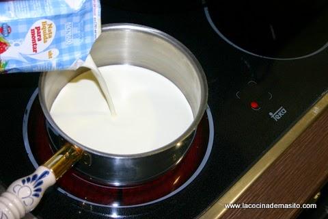 en una cazuela echamos la nata (crema de leche) y la ponemos a cocer