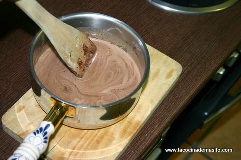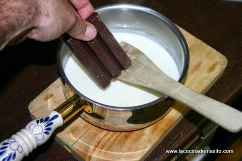 cuando empiece a hervir la retiramos del fuego y agregamos el chocolate
