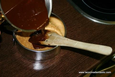 vertemos sobre el molde que teníamos en la nevera poniendo una cuchara dentro para que no rompa la galleta. volvemos a guardar en la nevera