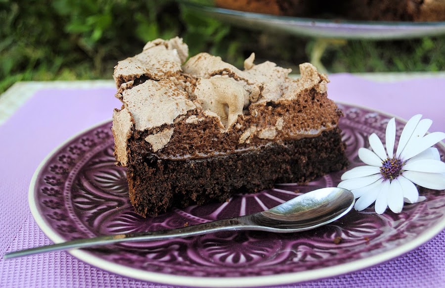 Esta tarta es de mi amiga La Cocina de Carolina, estupenda ella y su blog. En esta ocasión hizo esta entrada para El árbol del cacao donde donde podéis ver su receta.