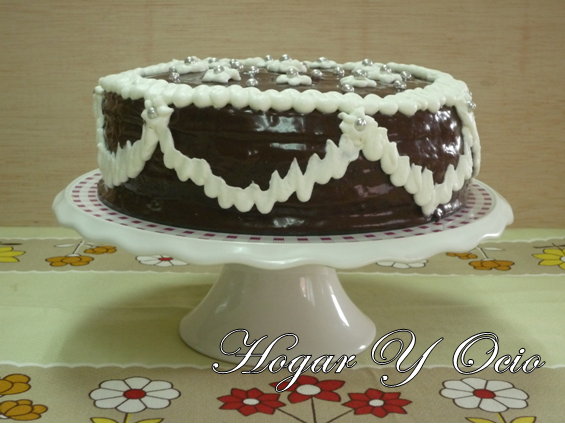 3. Colocamos el bizcocho sobre una rejilla y lo bañamos con la cobertura de chocolate recién hecha. (Enfriamos en la nevera)