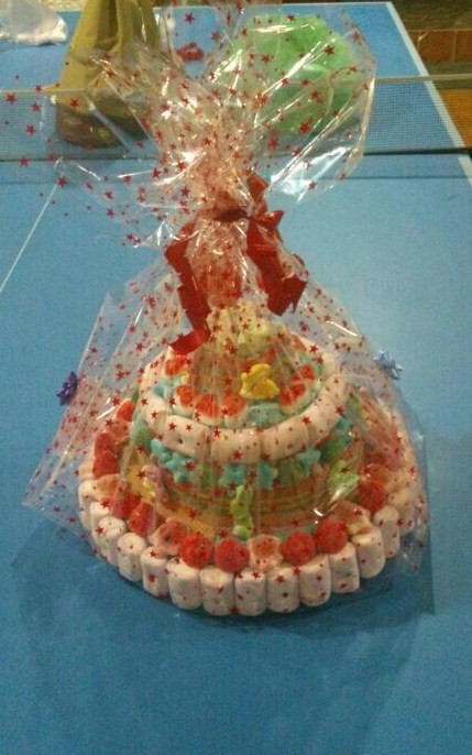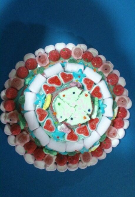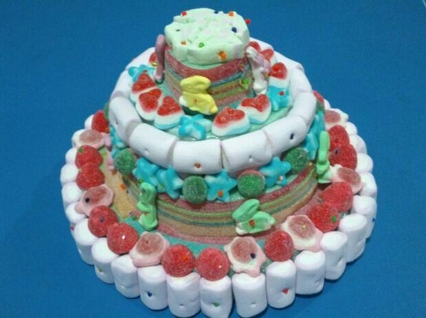 La verdad que quedó chula! Mucho mejor que la primera tarta de chucherías que hice, aunque lo único que me falló en la otra es que no puse demasiadas chucherías pero ya lo sé para otra vez..