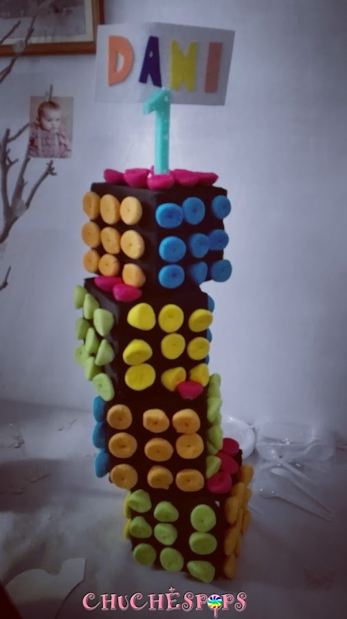 Tarta de golosinas para el cumpleaños de Dani.
