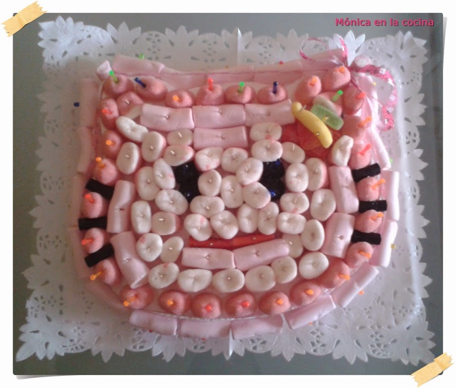 Después de unas cuantas tartas de chuches todavía no me ha quedado claro si gustan más a los niños o a los mayores, jejejeje.... Eso sí a ella le encantó, que es de lo que se trataba.