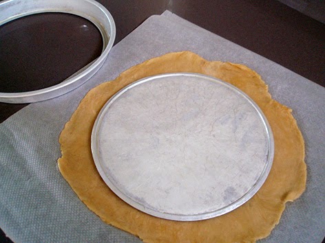 Una vez reposada, estiramos la masa sobre un papel de horno dándole la forma del molde.
