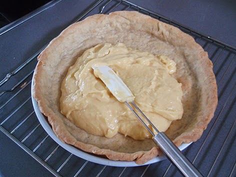 Extendemos la crema sobre la tartaleta ya cocida y colocamos las ciruelas con el corte hacia abajo.