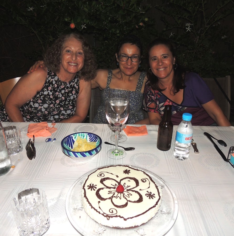 Otra de ellas, que no sale en la foto, trajo una tarta de limón, así que mi hija siguió con la decoración.