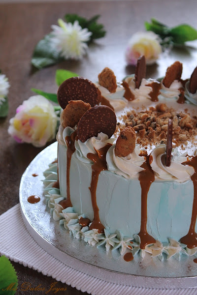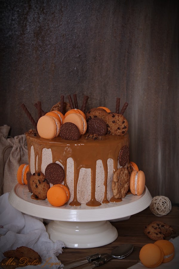La tarta para el cumple de mi hija cada año tiene que ser diferente y sobre todo como a ella le guste. Después de debatir mucho sobre como le gustaría que fuese este año, teníamos claro que debía de ser elaborada con cookies y dulce de leche, y que el dulce de leche y las cookies se tenían que notar en la receta. Estos dos ingredientes no podían acompañar el resto de los ingredientes, sino dominar sobre ellos.