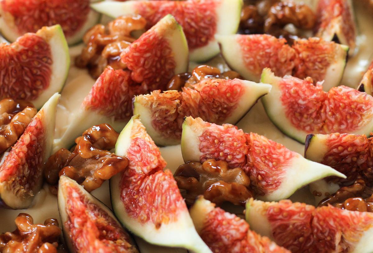 Tarta de crema con higos y nueces caramelizadas