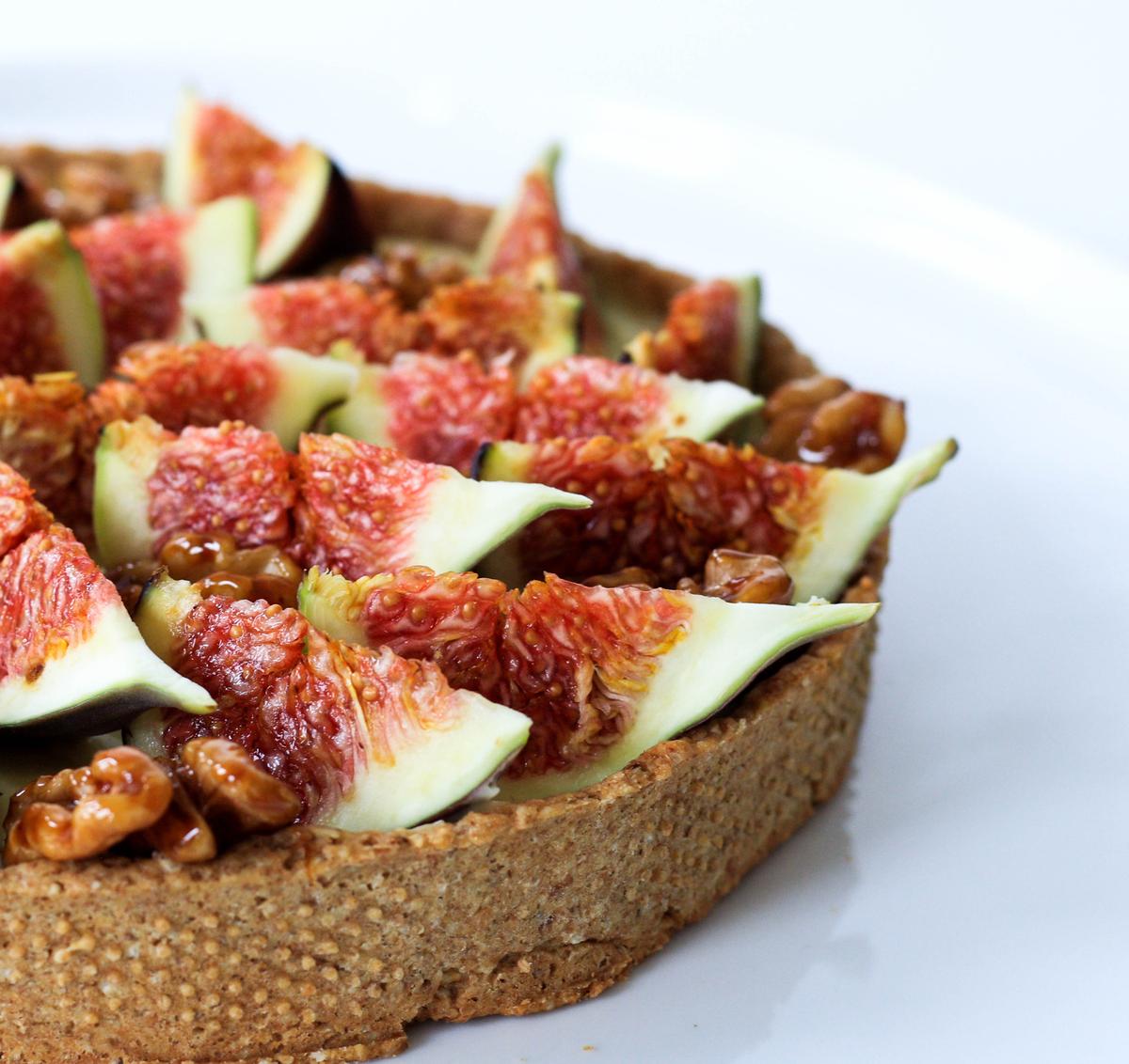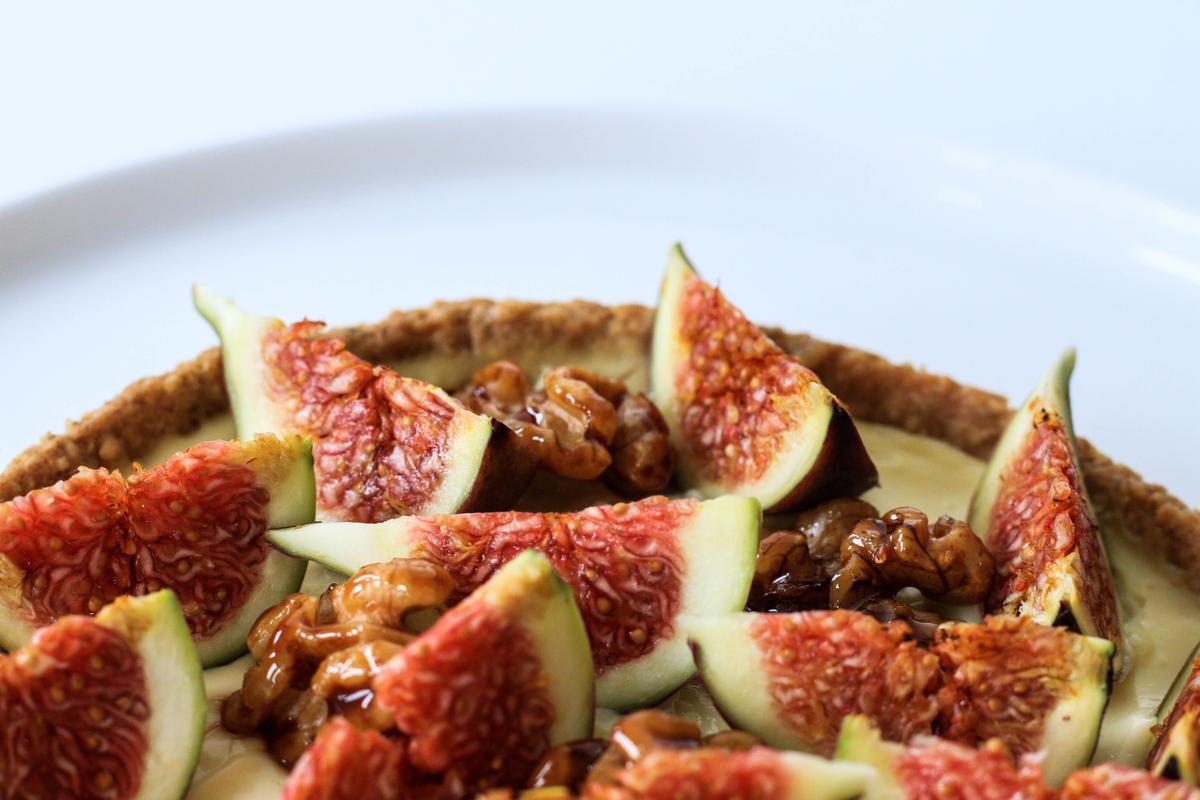 Esta es una de mis tartas preferidas. Es fresca, liviana y tiene una combinación de sabores que amo: higo y nueces.