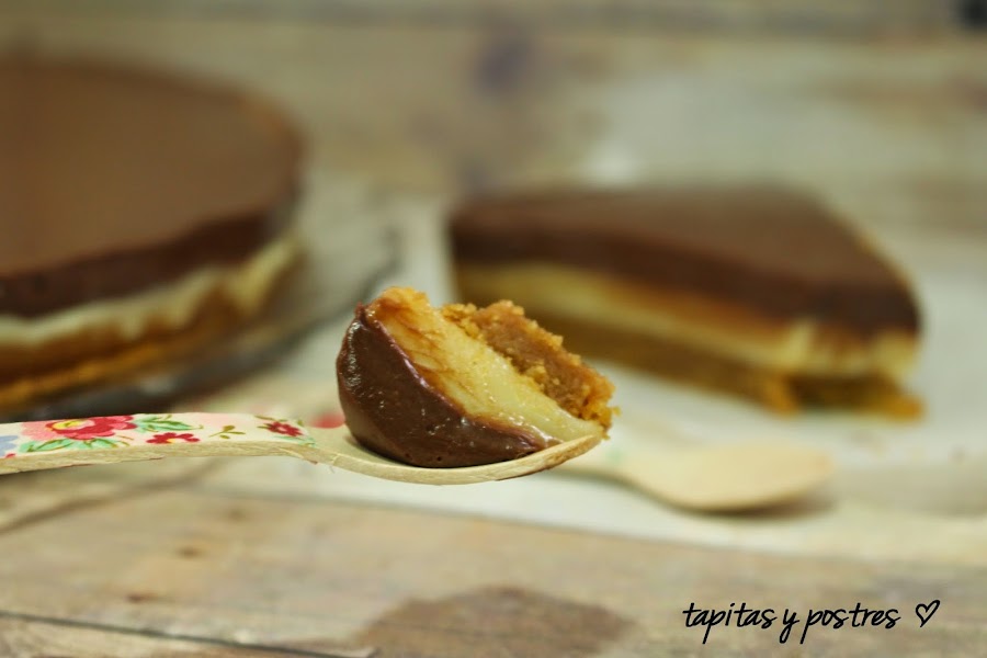 Bueno, a ver por donde empiezo. Esta tarta no debería llamarse así, debería llamarse "tarta de caramelo y chocolate". Tampoco debería tener este aspecto, pero es que no ha salido como debía.