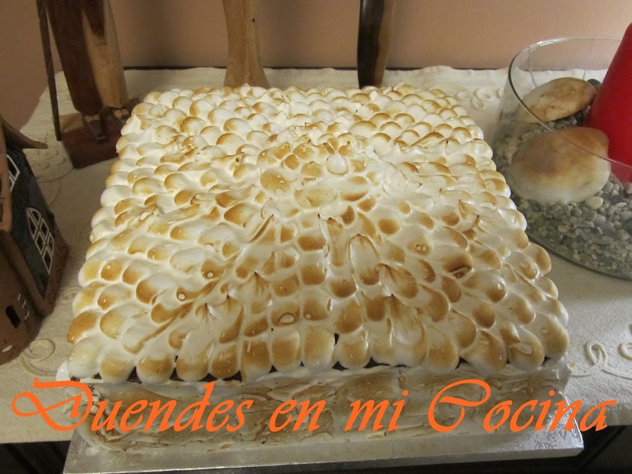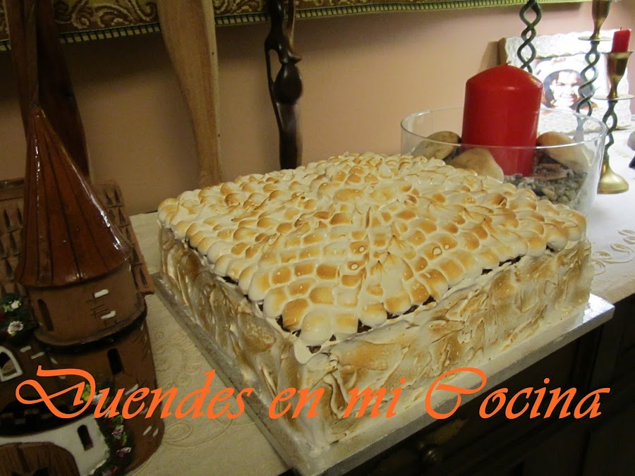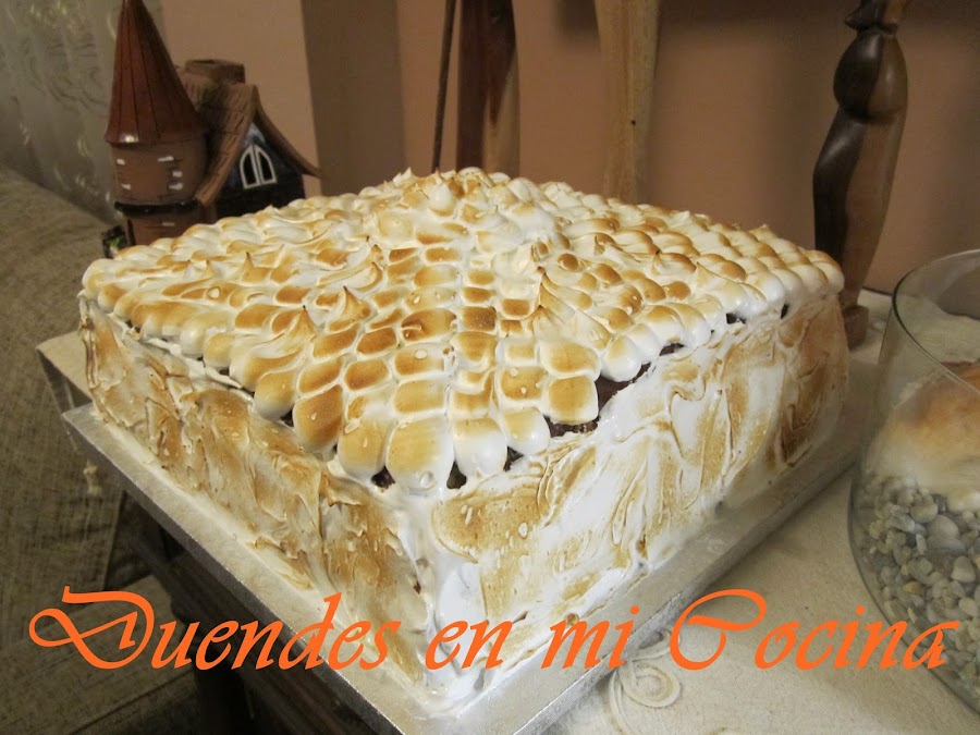 Esta tarta fue una gran tarta para el cumpleaños de una gran amiga mía. La hice rellena de crema mousse de turrón, forrada de ganache de chocolate aromatizado con fresa y el adorno es de merengue italiano, casi ná, jajajajajaja, riquísima.