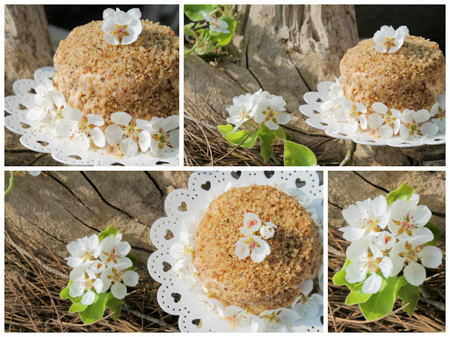 Cortamos el bizcocho por la mitad y vertemos la mitad de la crema, no hará falta emborrachar el bizcocho ya que absorbe la humedad de la crema. Tapamos con la otra mitad y cubrimos generosamente con otra capa de crema. Rebozamos con nueces molidas y guardamos en la nevera unas 10-12h. El bizcocho absorbe parte de la crema y el resultado es una tarta muy sabrosa y sobre todo muy, muy jugosa. Para mí personalmente es una combinación de sabores increíble, por esto mismo la he elegido como mi tarta de primer cumpleblog ;)