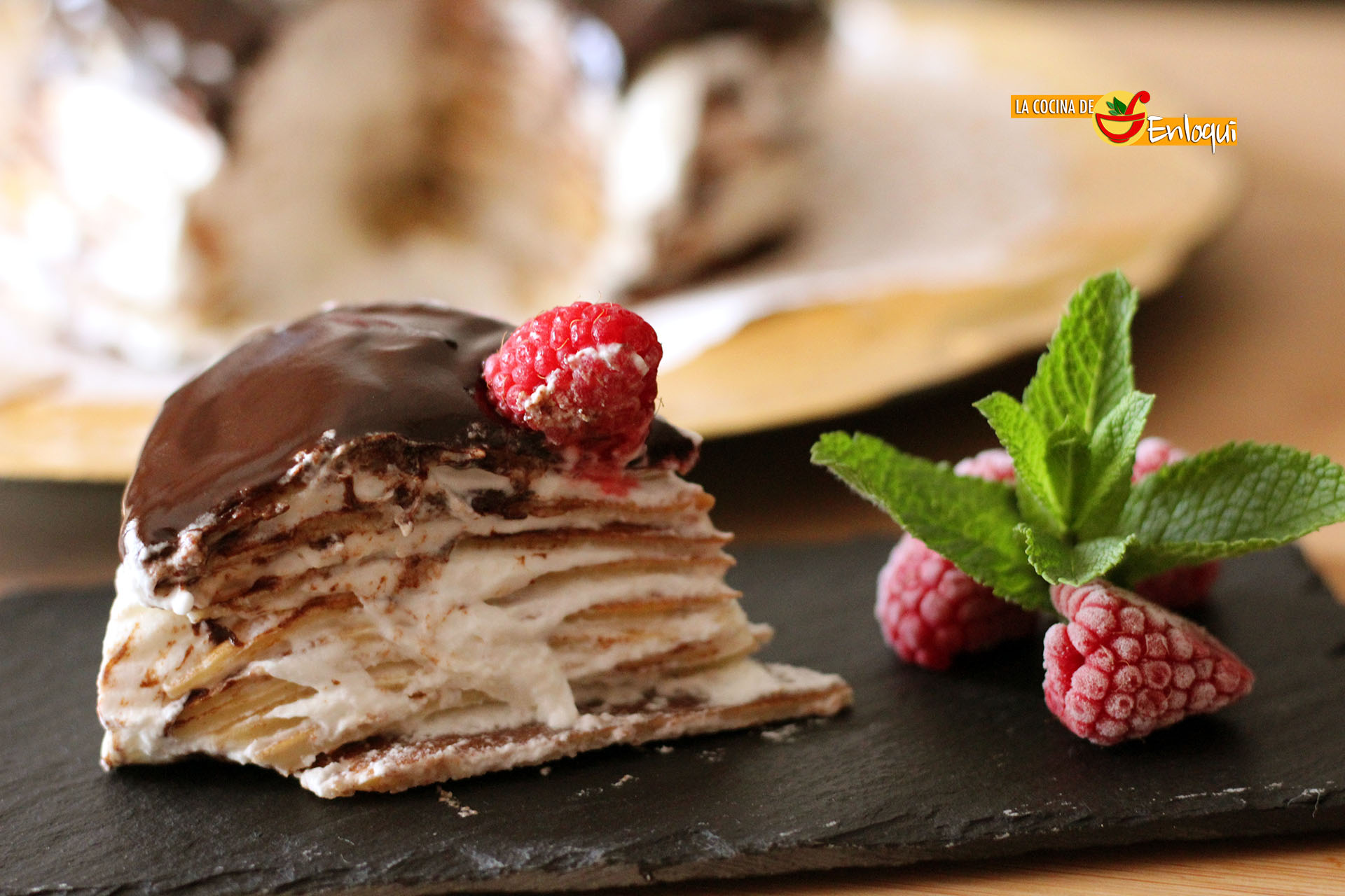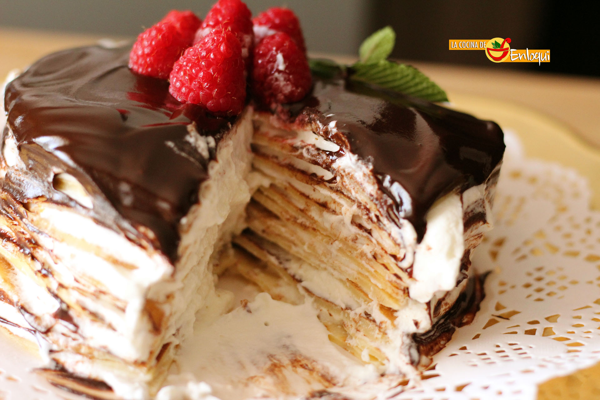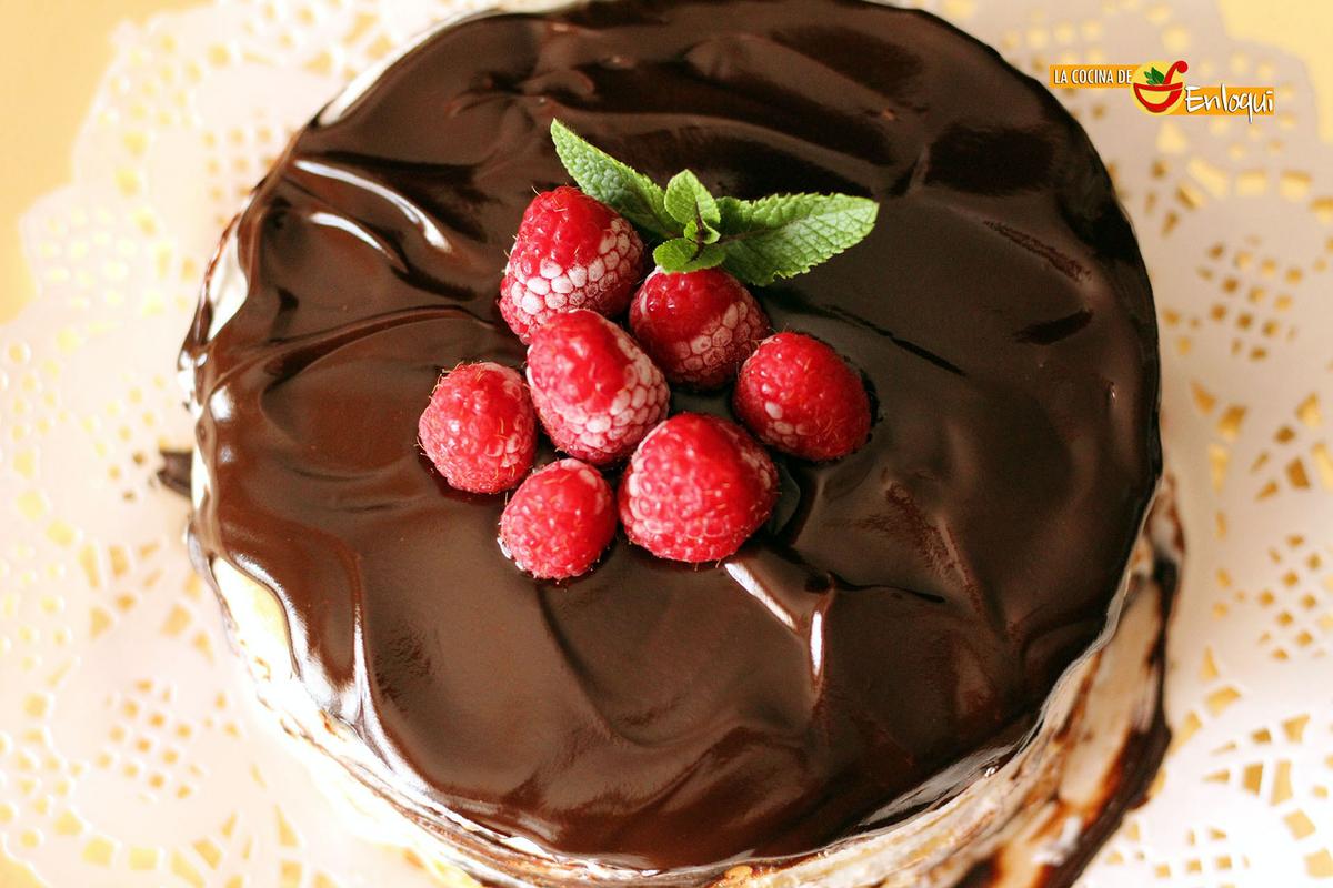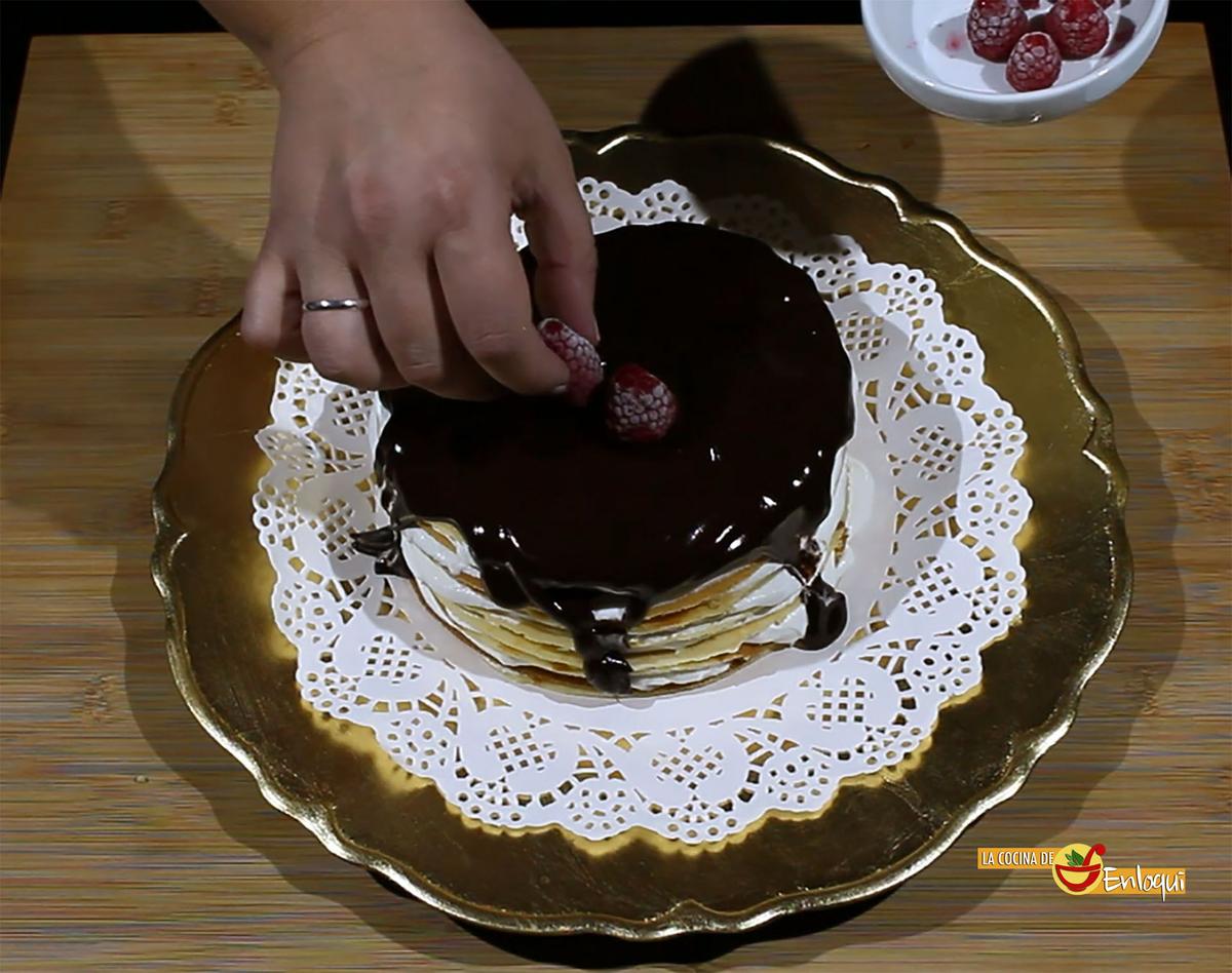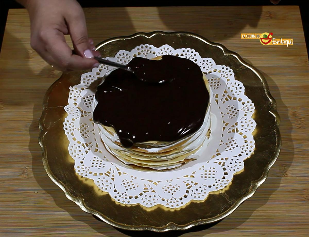 Tarta de crepes con nata (crema de leche) y chocolate