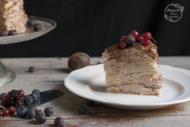 Es una tarta que tiene muy buen corte, y además bonito, porque quedan todas las capas a la vista. Y si sois amantes de los crepes, como mi hija Laura, vais a disfrutar de la tarta como enanos, seguro. Ya me contaréis.